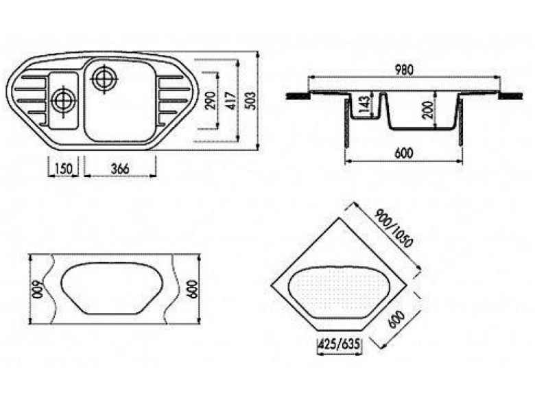 • Размеры мойки: 980х503х195 мм