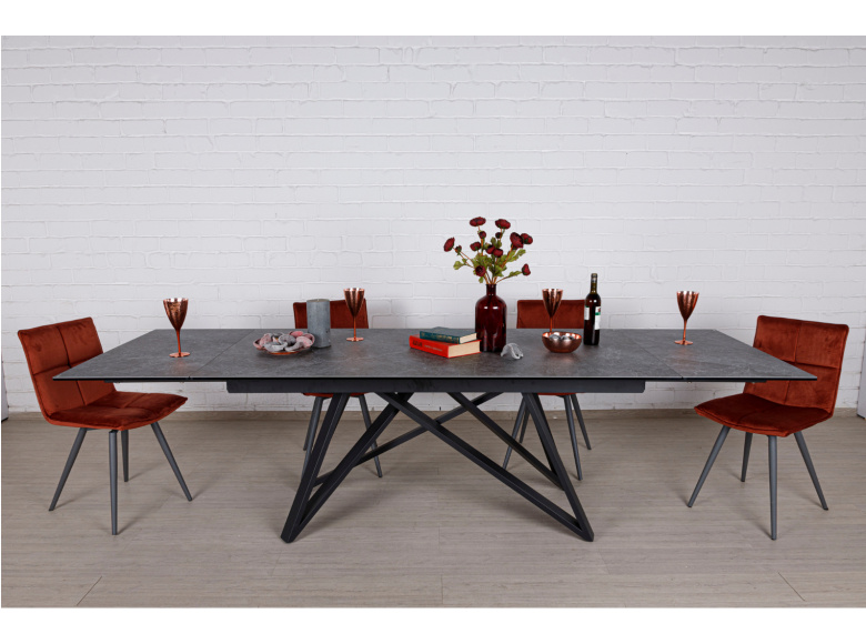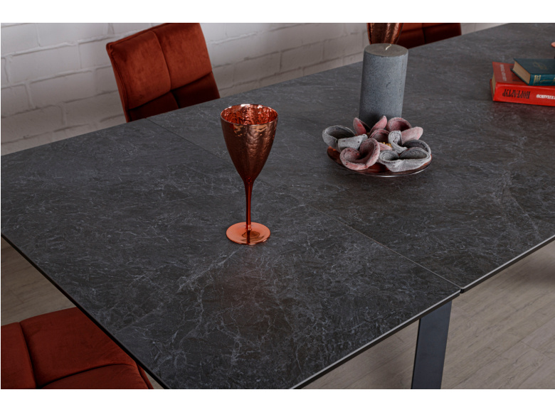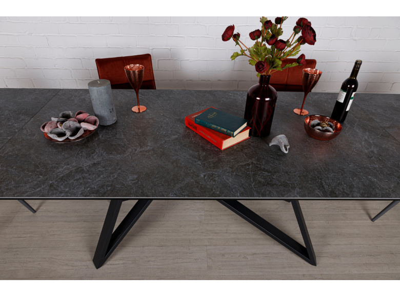 Обеденный стол AJAX от бренда NICOLAS - хороший выбор для организации обеденной зоны. Столешница из керамики имитирует натуральный камень. Керамика устойчива к царапинам, температурным перепадам и химическому воздействию. За ней легко ухаживать, достаточно помыть теплой водой с мыльным раствором и протереть сухой салфеткой. Благодаря раздвижному механизму размер стола можно увеличить до 280 см. Оригинальная основа из металла покрашена порошковой краской.