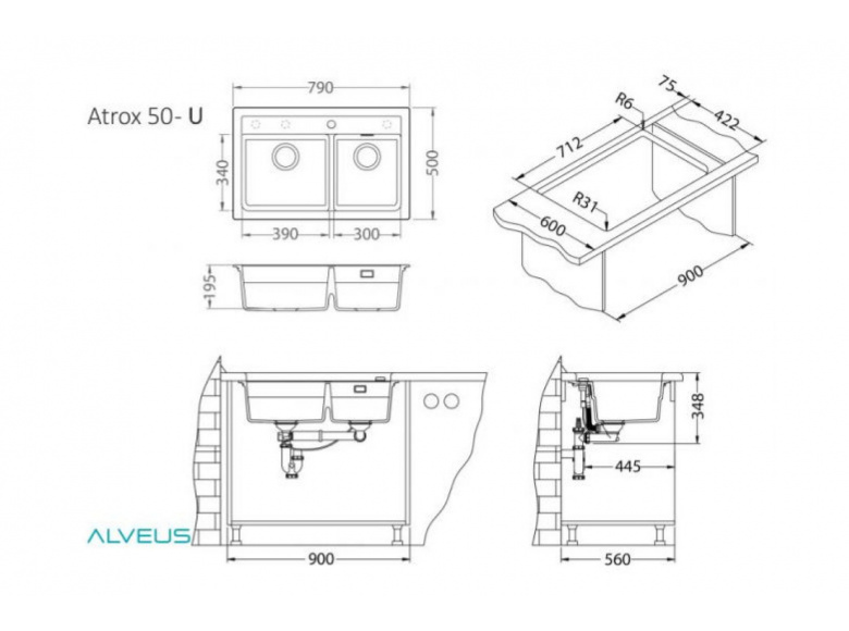 ATROX 50 от бренда ALVEUS - двойная кухонная мойка в белом цвете. Две чаши - это в два раза больше красоты и удобства. Раковина такого типа обеспечивает максимальный уровень комфорта. ATROX 50 отличается простотой в уходе и продуманностью дополнительных аксессуаров. Крепкий высокотехнологичный материал изготовления (80% гранитной крошки и 20% полимерных смол) приятен на ощупь, экологически чист, отличается непревзойденной прочностью и устойчивостью ко всем механическим и химическим воздействиям.