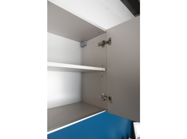Корпус и фасады изготовлены из ламинированного ДСП, мобильные полки из МДФ. Это экологически чистые и безвредные для здоровья человека материалы.
