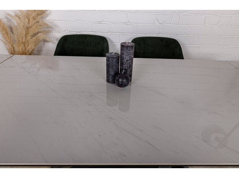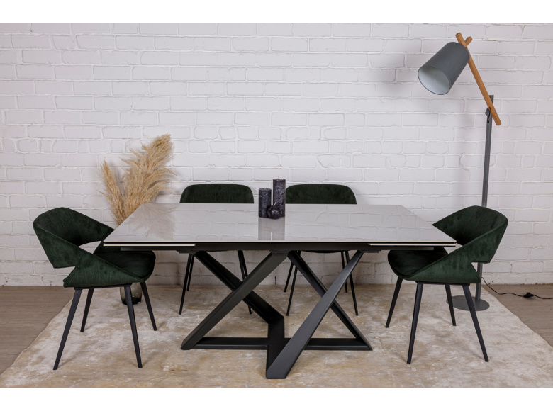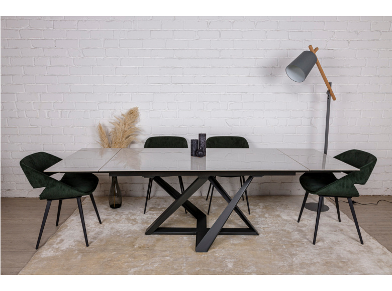 FLEETWOOD NEW от бренда NICOLAS –  стильный и практичный раскладной обеденный стол с оригинальной геометрической формой. Основание стола впечатляет четкими линиями. Столешница выполнена из прочной керамики, устойчивой к механическим повреждениям, влаге и перепадам температур. Стол оснащен раздвижным механизмом с дополнительными панелями с двух сторон, позволяющими увеличить стол на 80 см или 40 см. FLEETWOOD - удачное решение для обеденной зоны в современном стиле.