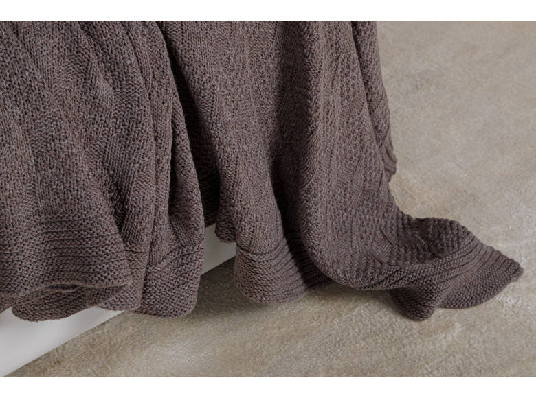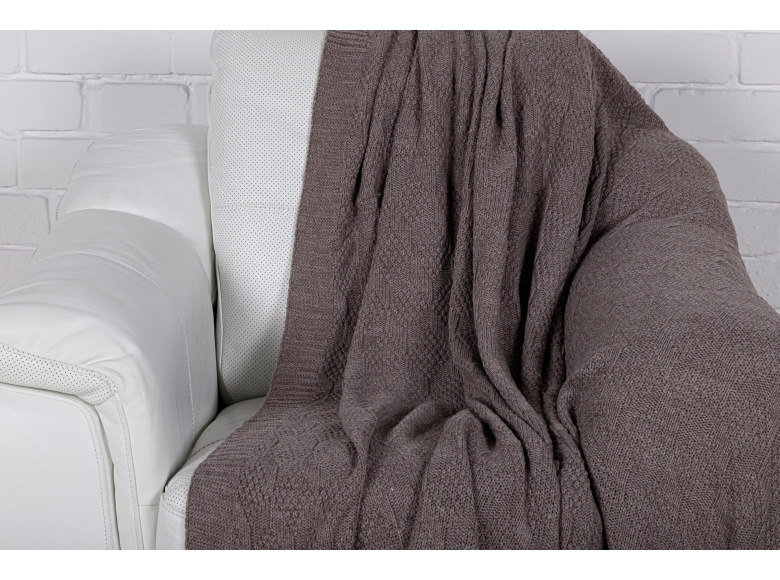Модель пледа ИНСТА от бренда NICOLAS связана узором, составленным из перекошенных ромбов, благодаря чему он выглядит рельефным. Покрывало двустороннее, выполнено из смесовой пряжи и обладает прочностью синтетических волокон, и гигроскопичностью и воздухопроницаемостью натуральных. При стирке изделие не садятся и не подвергаются деформации, а краски не теряют яркость.