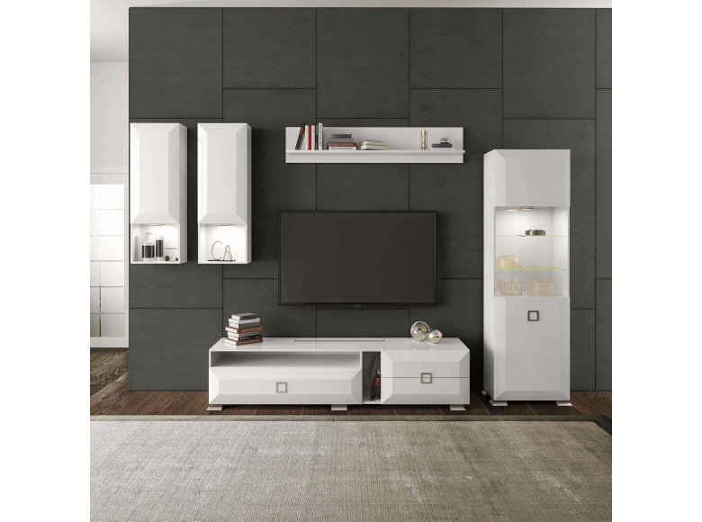 • Комплектация гарнитура: шкаф для одежды, шкаф навесной, тумба ТВ, витрина