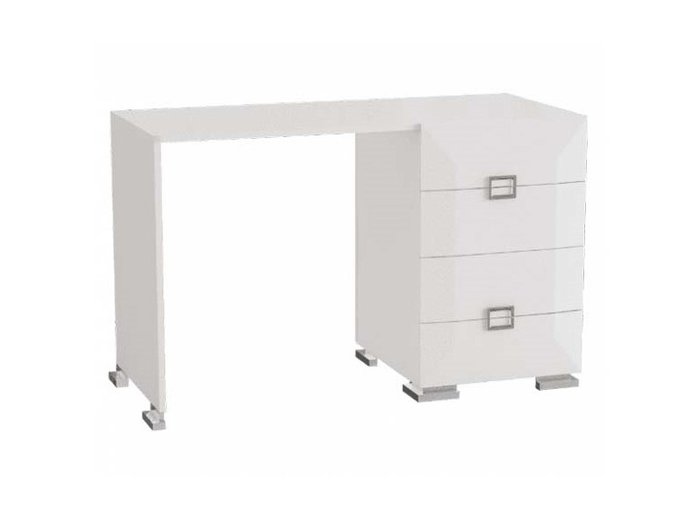 Туалетный столик KARAT от украинского производителя АКВА РОДОС станет отличным дополнением Вашей обстановки. Изготовлено изделие из экологически чистого МДФ, что гарантирует качество и прочность. Конструкция имеет белую глянцевую фактуру. Четыре выдвижных ящика с системой плавного закрывания, позволяют разместить все необходимое для ухода за личной гигиеной. Особый эффект придают итальянские дизайнерские ручки и ножки "Джусти" (Giusti).
