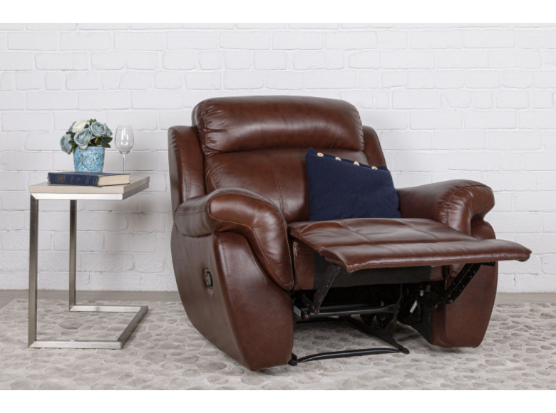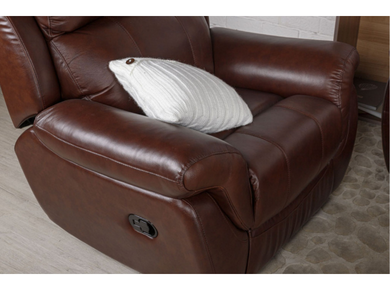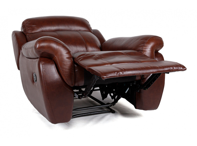 Невероятно удобное кресло СОРЕНТО от бренда BOAS обеспечит комфортный отдых. Реклайнер -  механизм трансформации кресла, при помощи которого отдыхающий может откинуть спинку и выдвинуть подставку для удобного размещения ног. Наполнение сидений – плотный пенополиуретан. Спинка кресла наполнена холлофайбером. Обивка кресла, передняя тактильная часть, из натуральной кожи. Задняя и боковые части выполнены из экокожи.