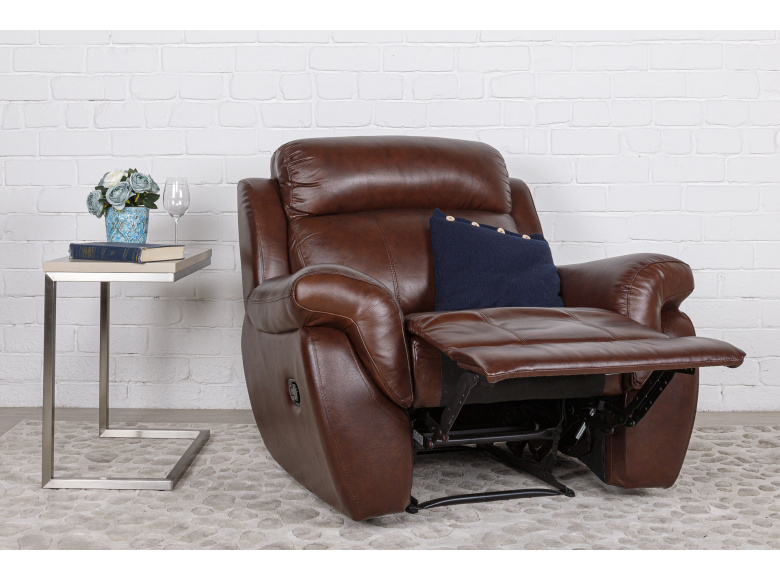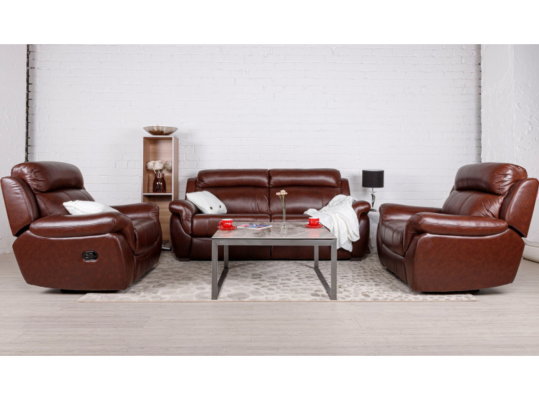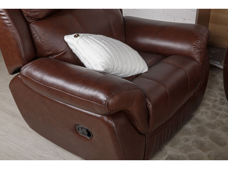 Невероятно удобное кресло СОРЕНТО от бренда BOAS обеспечит комфортный отдых. Реклайнер - это механизм трансформации кресла, при помощи которого отдыхающий может откинуть спинку и выдвинуть подставку для удобного размещения ног. Наполнение сидений – плотный пенополиуретан. Спинка кресла наполнена холлофайбером. Обивка кресла, передняя тактильная часть, из натуральной кожи. Задняя и боковые части выполнены из экокожи.