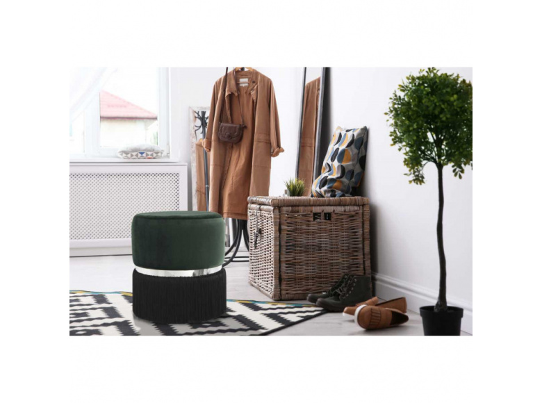 Пуфик Milano Dark Green/Black/Silver от бренда Arhome - прекрасный выбор для меблировки современного интерьера. Модель выполнена в лаконичном темном цвете. Для декорирования используется бахрома в тон, а также металлическое кольцо в серебристом оттенке. Такой дизайн изделия наполнит интерьер элегантностью и изысканностью.