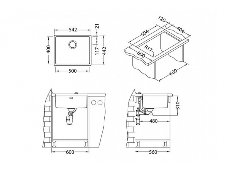 • Размеры мойки: 542 x 442 мм