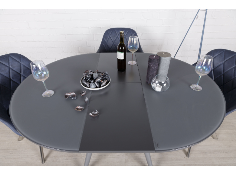 Обеденный стол AUSTIN от бренда NICOLAS украсит любую гостиную, кухонную либо столовую зону. Круглая  столешница предоставляет практическую возможность выбора между экономией пространства и количеством посадочных мест. Изготовлена столешница из матового закаленного стекла на основе из МДФ. Стекло проходит процедуру шелкографии, в следствии чего поверхность имеет бархатистую структуру. Ножки из нержавеющей стали покрыты высококачественной краской. Вставка, увеличивающая столешницу, выполнена из МДФ.