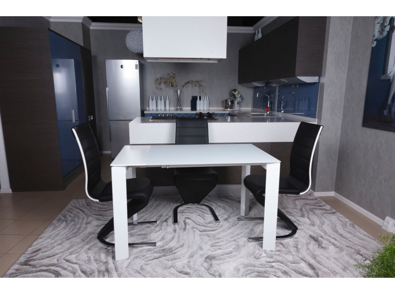 Прямоугольный обеденный стол BRISTOL B от бренда NICOLAS имеет лаконичный дизайн, строгие и сдержанные линии. Столешница выполнена из закаленного матового стекла и удлиняется с помощью вставок из МДФ. Она элегантно сочетается с алюминиевыми ножками, покрытыми однотонной матовой краской. При выборе обеденного стола, прямоугольная форма является классическим вариантом. С ней легко допускаются различные по дизайну и цвету стулья, что может послужить интересной идеей для интерьера.