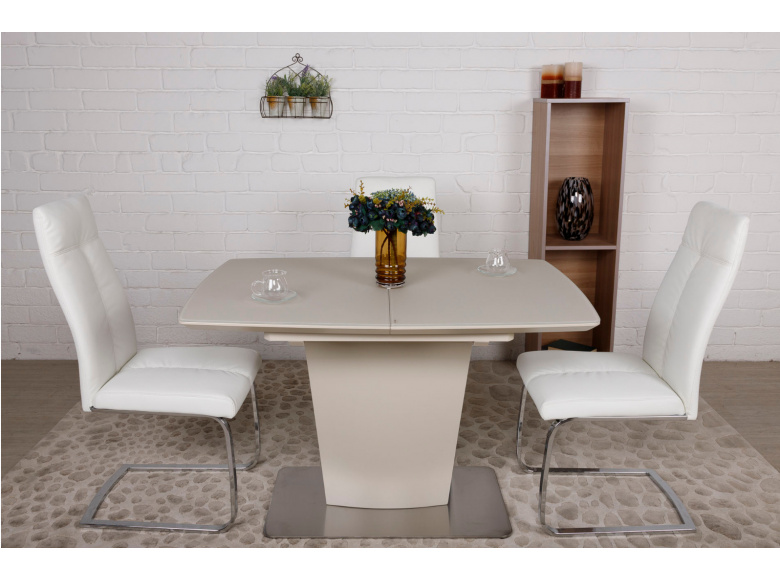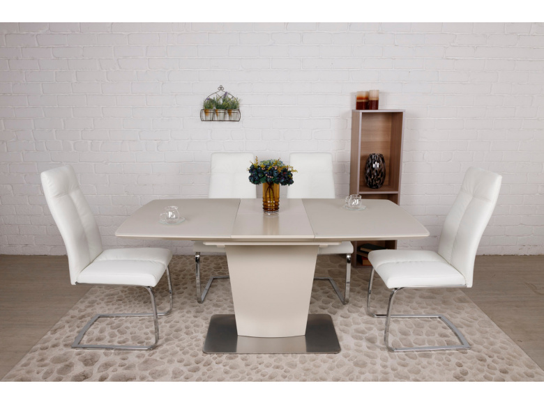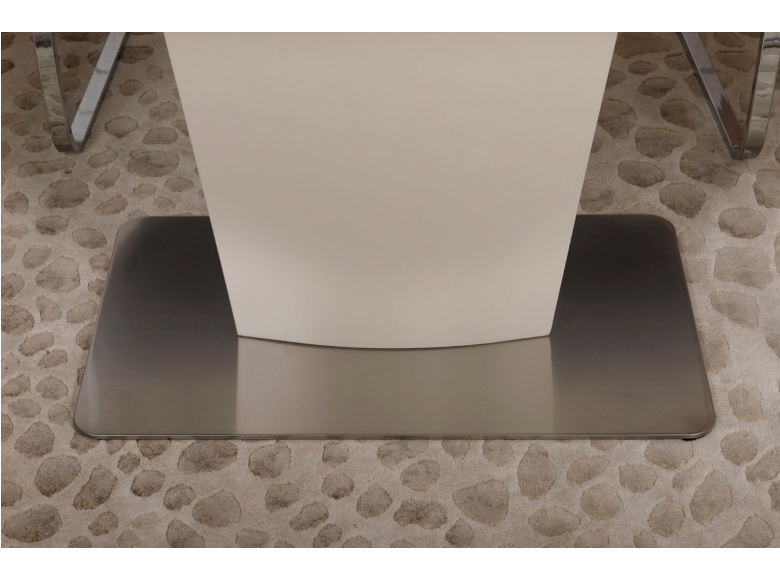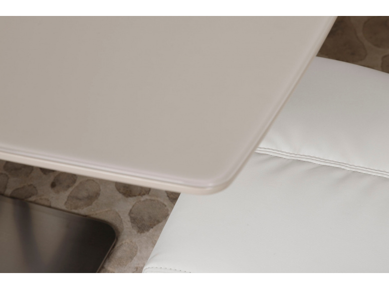 Стол CHICAGO от NICOLAS - классическая и стильная модель. Столешница из закаленного матового стекла и вставками из МДФ, позволяющими увеличить ее размер на 45 см. Тумба из МДФ установлена на подставку из нержавеющей стали, обеспечивая прочность и надежность. Прямоугольная форма со сглаженными углами создает безопасность. CHICAGO станет элегантным дополнением мебели вашей кухни или гостиной.