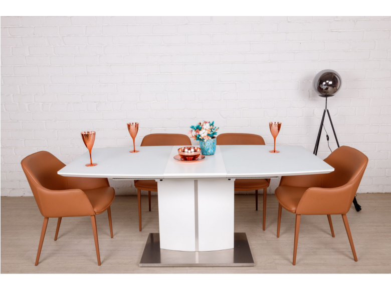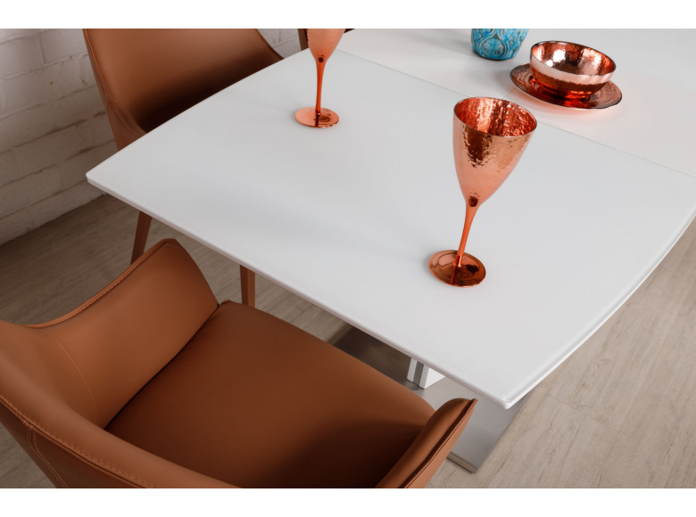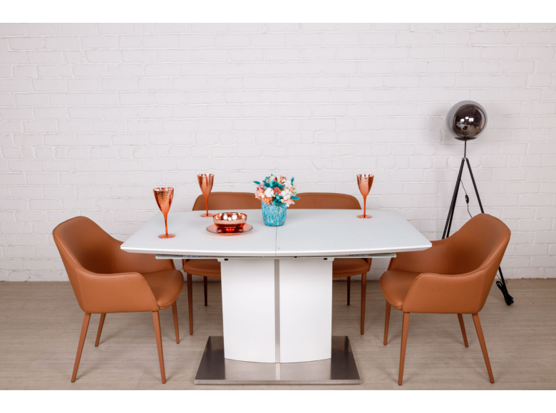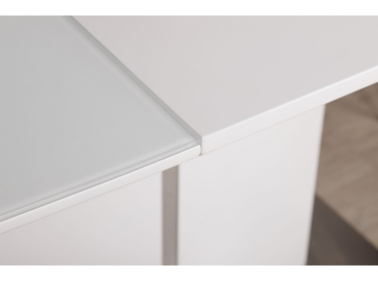 Обеденный стол DALLAS от бренда NICOLAS станет незаменимым элементом вашего интерьера. Столешница из высококачественного закаленного матового стекла на основе из МДФ позволяет получить максимум полезной площади, даже при минимальных общих габаритах. Расположенная на платформе из нержавеющей стали ножка декорирована металлическими вставками. Благодаря раскладному механизму, стол DALLAS может увеличиваться на 40 см.