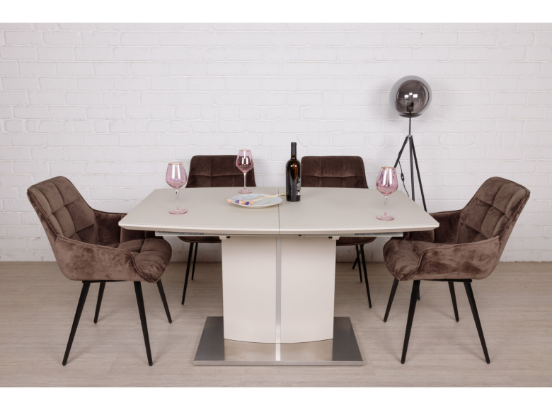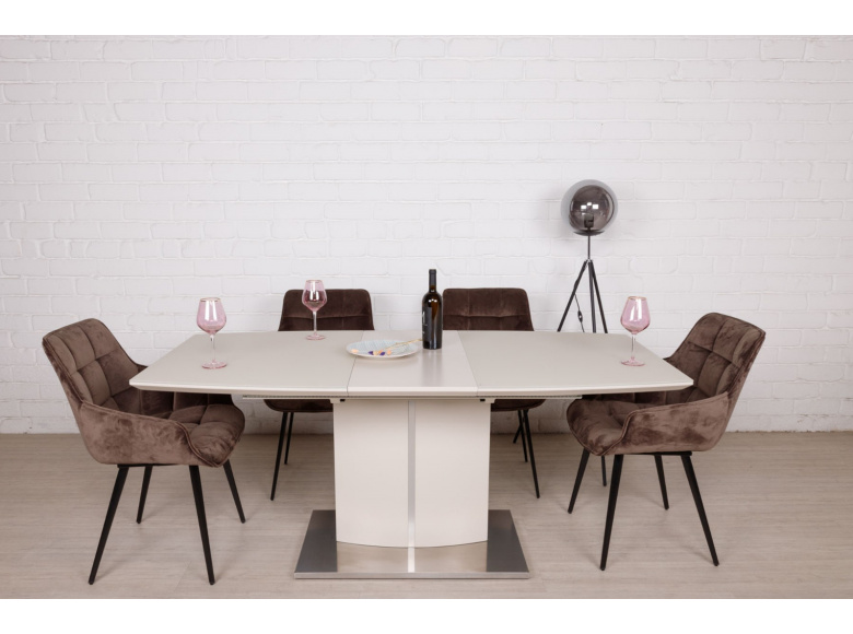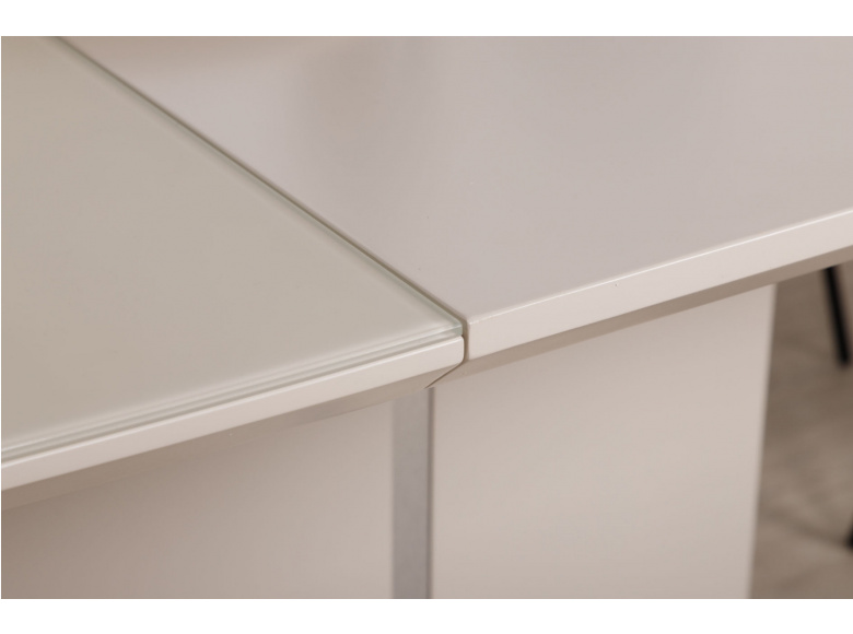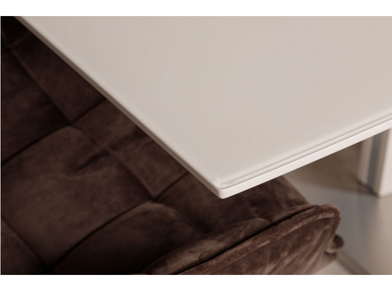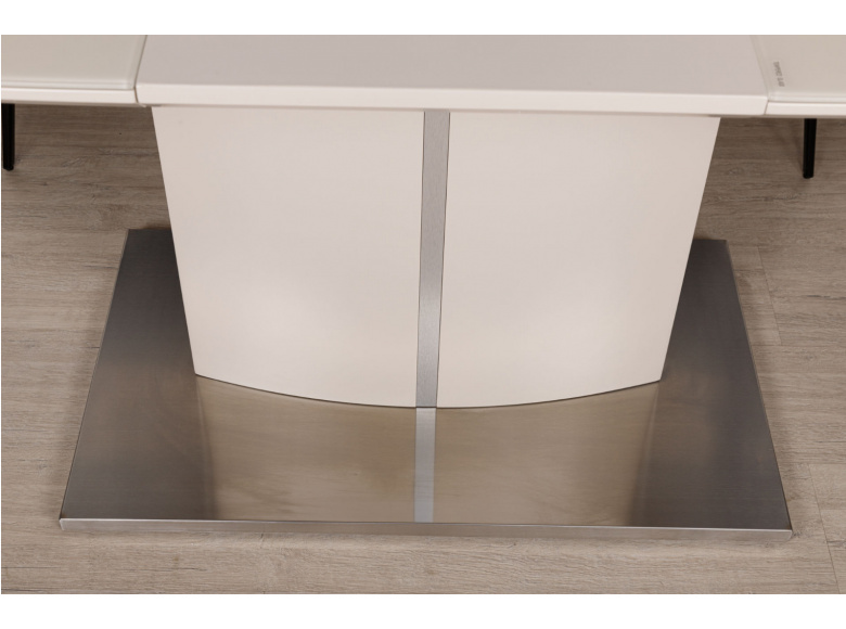 Обеденный стол DALLAS от бренда NICOLAS станет незаменимым элементом вашего интерьера. Столешница из высококачественного закаленного матового стекла на основе из МДФ позволяет получить максимум полезной площади, даже при минимальных общих габаритах. Расположенная на платформе из нержавеющей стали ножка декорирована металлическими вставками. Благодаря раскладному механизму, стол DALLAS может увеличиваться на 40 см.