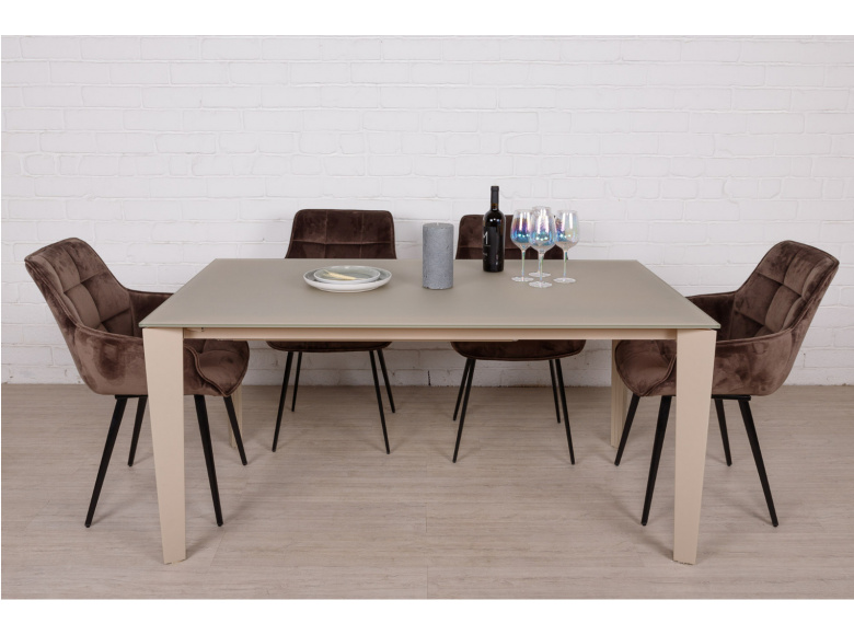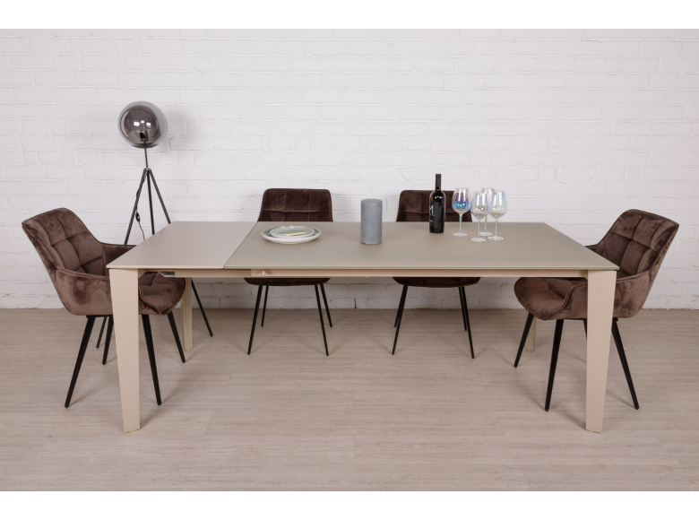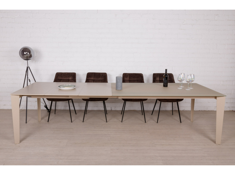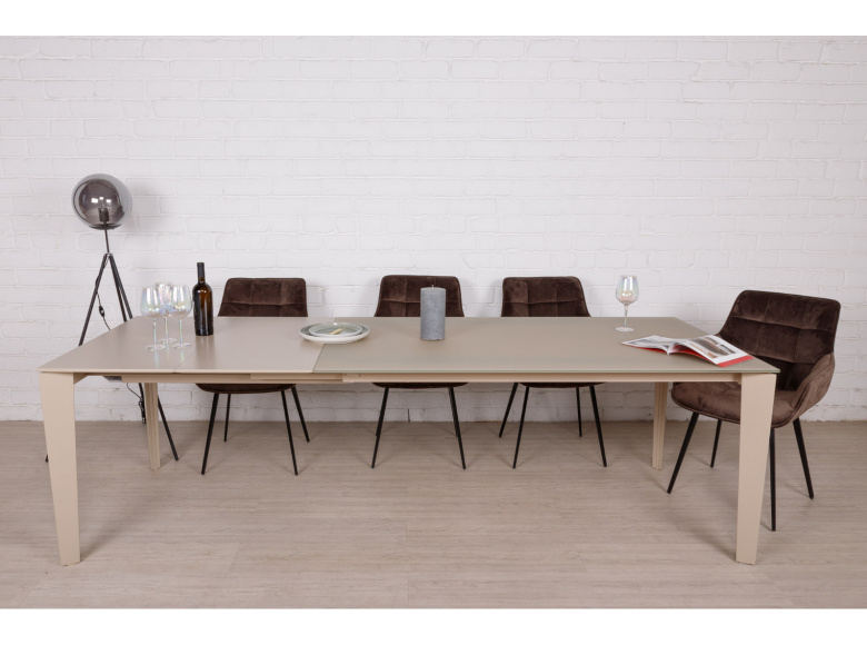 Обеденный стол LIVERPOOL S от бренда NICOLAS классическая модель для современной кухни. Столешница из закаленного матового стекла эстетически красиво смотрится, практична и прочна.  За ней легко ухаживать, достаточно помыть теплой водой с мыльным раствором и протереть сухой салфеткой. Раздвижной механизм позволяет увеличить размер столешницы до 230 см. Ножки выполнены из алюминия и окрашены в цвет столешницы.