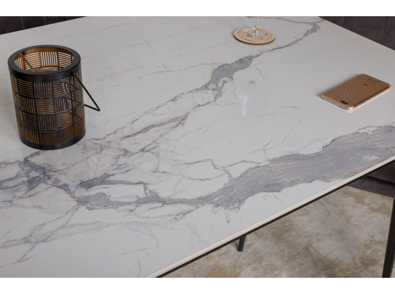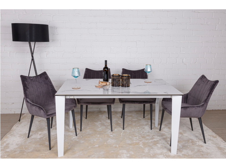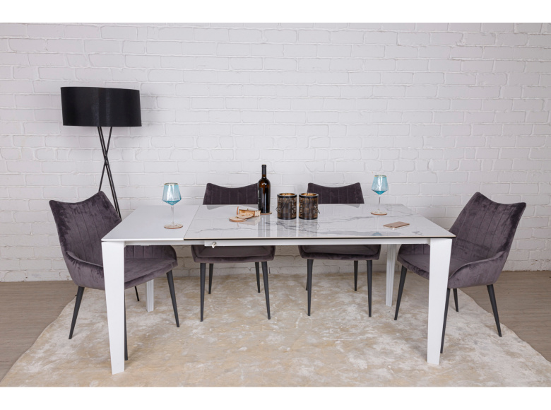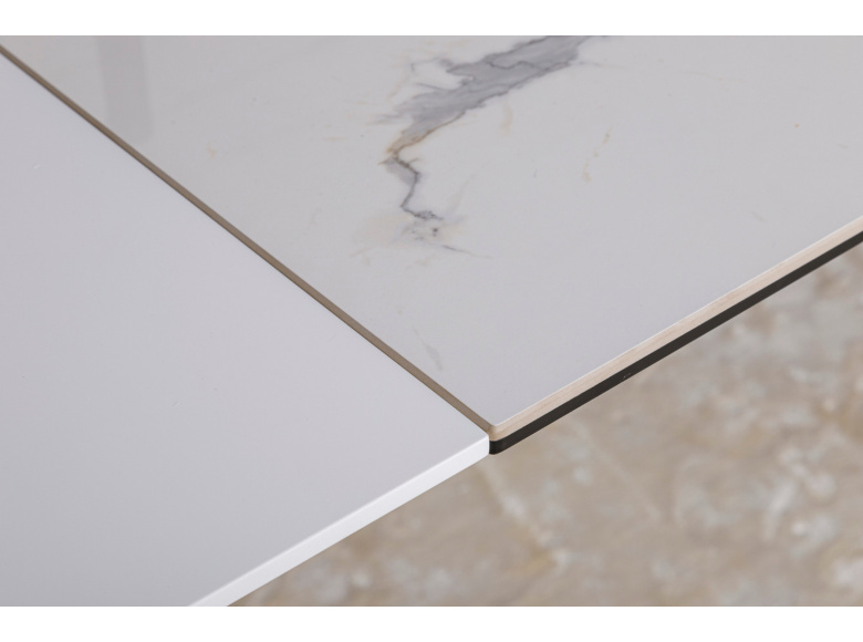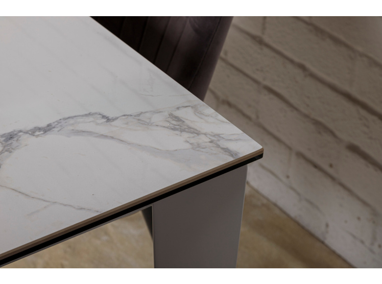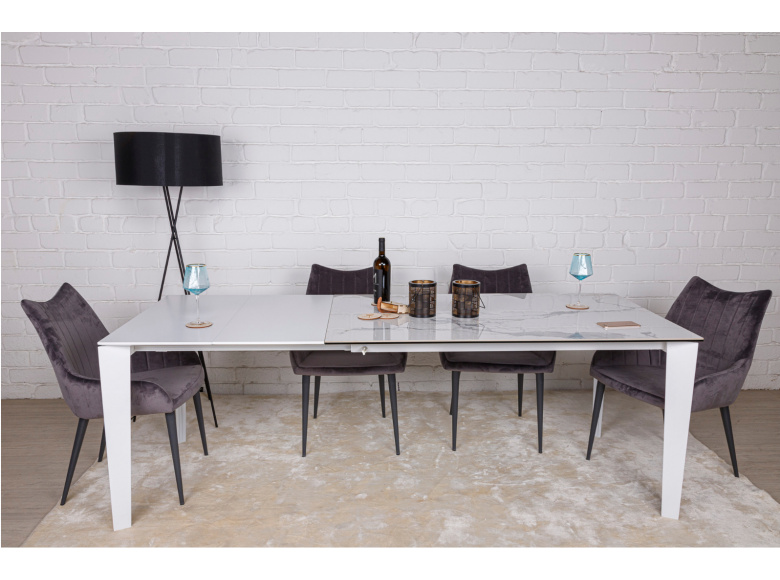 Обеденный стол LIVERPOOL S от бренда NICOLAS отличный выбор для современной кухни. Керамическая столешница устойчива к механическим повреждениям и температурным перепадам. За ней легко ухаживать, достаточно помыть теплой водой с мыльным раствором и протереть сухой салфеткой. Раздвижной механизм позволяет увеличить размер столешницы до 230 см. Ножки выполнены из алюминия и окрашены в цвет столешницы.