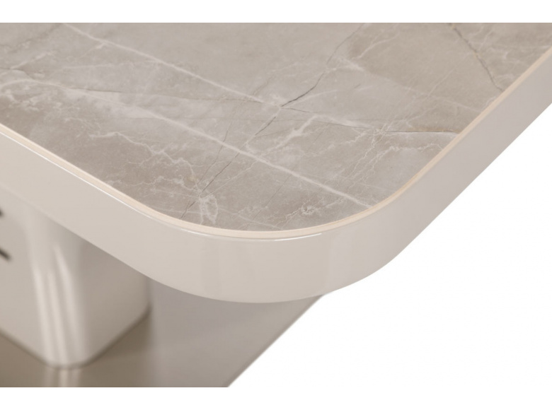 Обеденный стол QUEBEC от бренда OHRA стильный и функциональный предмет мебели для обеденной зоны. Столешница изготовлена из прочной и практичной керамики. Она устойчива к царапинам и температурным перепадам. Благодаря дополнительной вставке, размер стола можно увеличить на 40 см. Закругленные края смягчают очертания, создавая лаконичный современный дизайн. Устойчивое основание из МДФ плотно стоит на платформе из нержавеющей стали. QUEBEC подчеркнет легкую и непринужденную атмосферу Вашего пространства не перегружая интерьер.