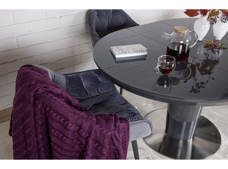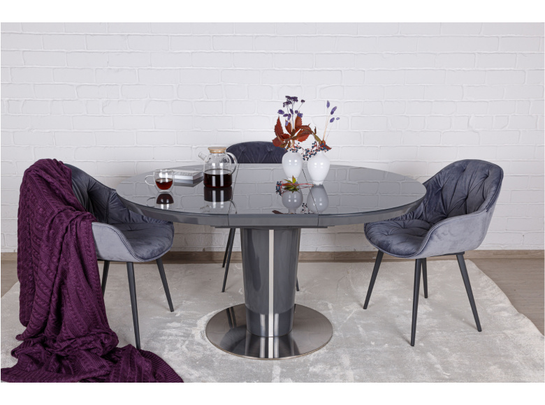 Обеденный стол SACRAMENTO от бренда OHRA - идеальное сочетание красоты и функциональности. В качестве поверхности столешницы используется закаленное стекло, вставка МДФ. Глянцевая поверхность отражает свет и слегка освобождает пространство. Закаленное стекло не боится горячего и холодного, за ним легко ухаживать. Прочный механизм раскладки удобно и легко  поможет увеличить размер стола от 110 до 145 см. Каркас изготовлен из МДФ и нержавеющей стали. SACRAMENTO - прекрасное решение для небольшой кухни или столовой.