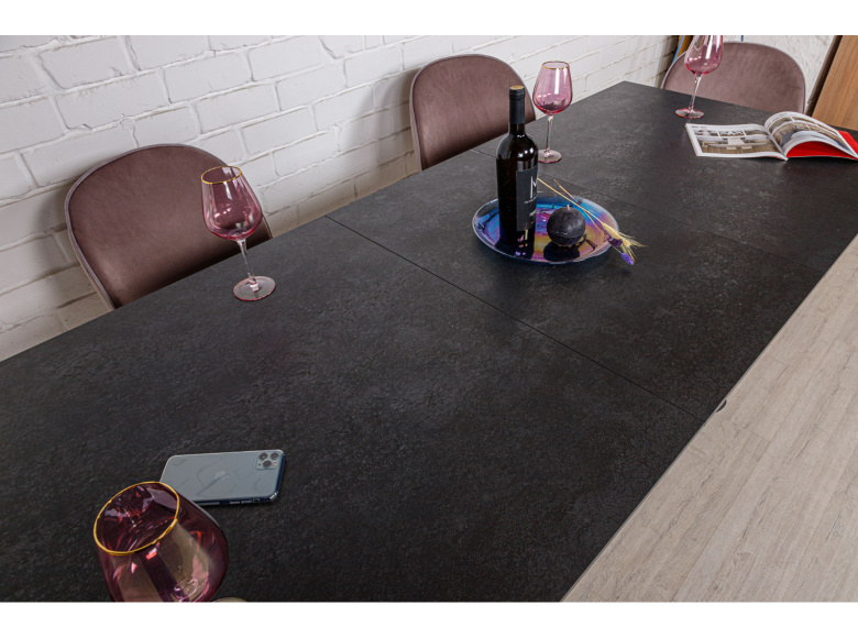 Обеденный стол TENNESSEE от бренда OHRA - гармоничное сочетание стиля и функциональности. Керамическая столешница очень роскошно смотрится. Это прочный материал, устойчив к механическим повреждениям, температурным перепадам и химическим воздействиям. За ней легко ухаживать, достаточно помыть теплой водой с мыльным раствором и протереть сухой салфеткой. Раздвижной механизм позволяет увеличить размер до 210 см. Основание - оригинальная перекрестная конструкция из металла. TENNESSEE - станет центральным элементом вашей обеденной зоны.