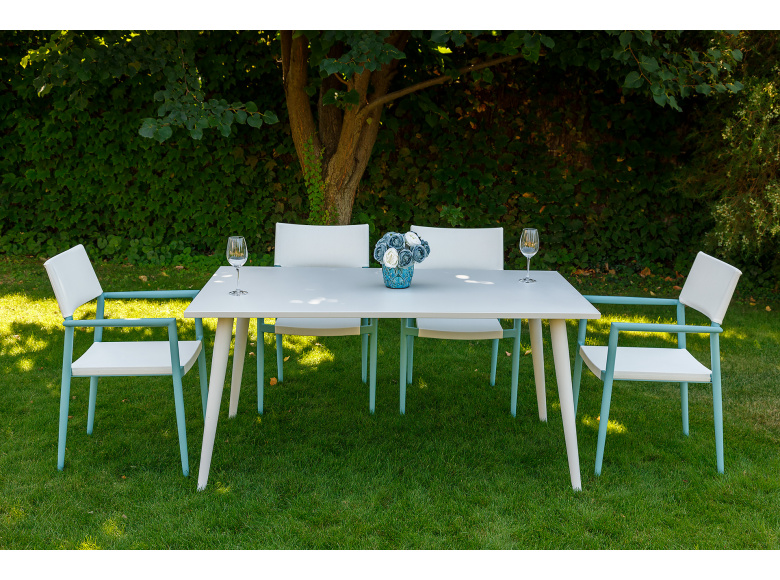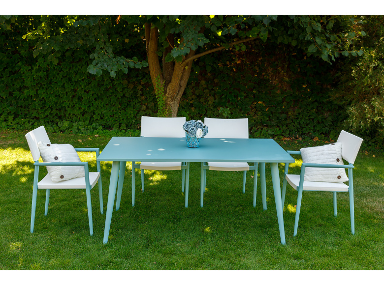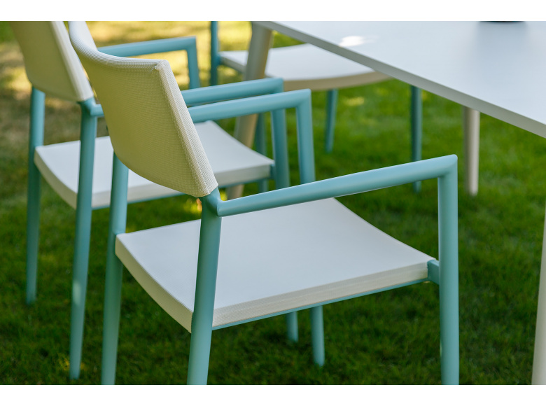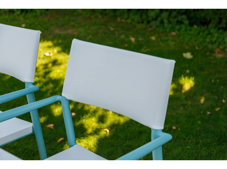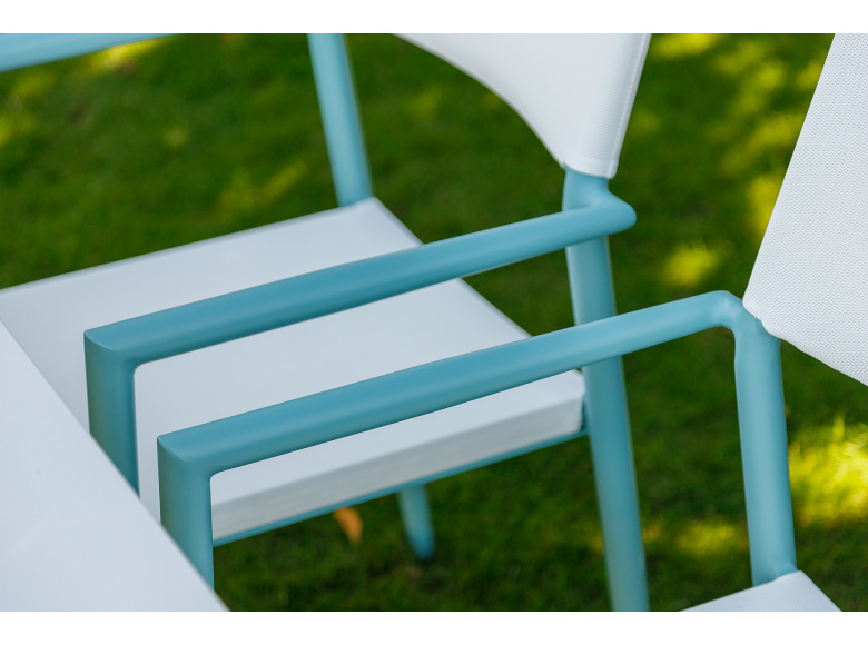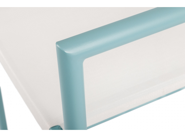 SALTA современный стул серии outdoor от бренда NICOLAS. Материалом изготовления является алюминий, преимуществами которого являются: долговечность; низкий вес; устойчивость к перепадам температур, влажности, воздействию ветра и прямых солнечных лучей; устойчивость к коррозии и неблагоприятным погодным условиям. Сиденье и спинка выполнены из современной ткани Textilene - сетка индустриального плетения из полиэстеровой нити с виниловым покрытием. Эта ткань не впитывает влагу, пропускает воздух и быстро просыхает.