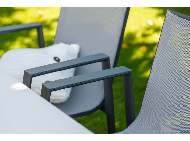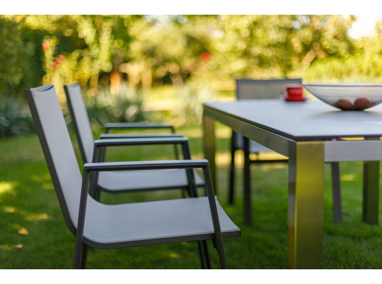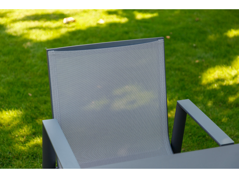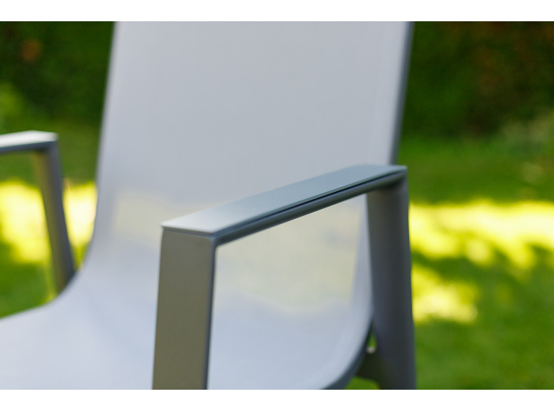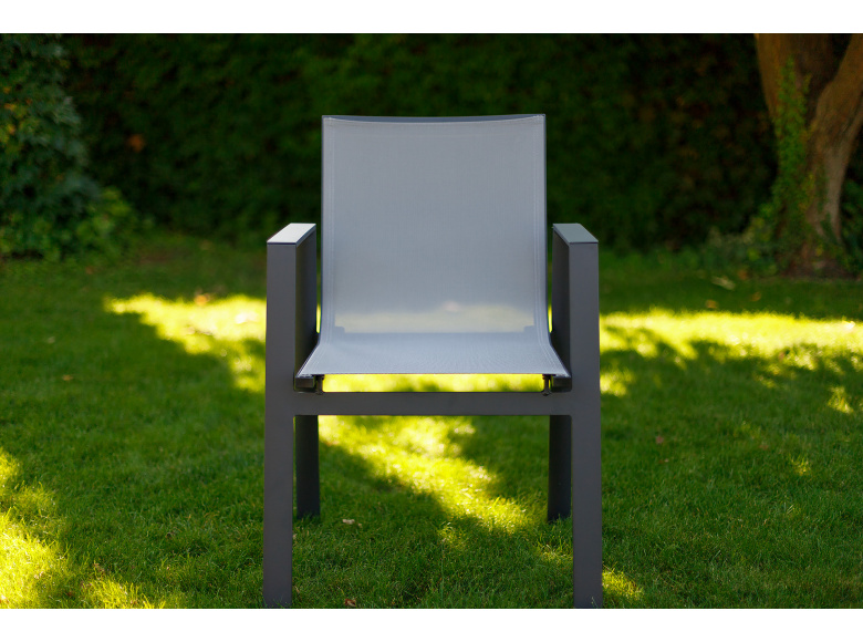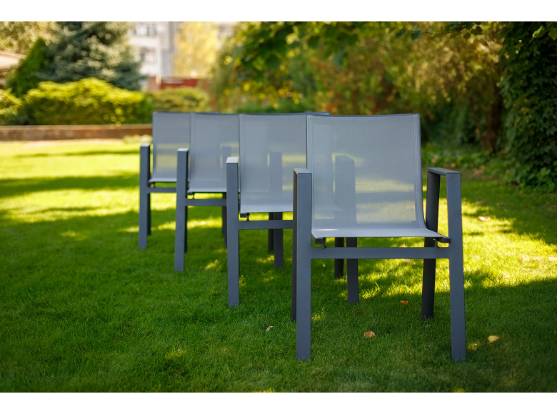 Стул SANTIAGO серии outdoor от бренда NICOLAS. Материалом изготовления является алюминий, преимуществами которого является: долговечность; низкий вес в сравнении с другими металлическими аналогами, устойчивость к перепадам температур, влажности, воздействию ветра и прямых солнечных лучей; устойчивость к коррозии и неблагоприятным погодным условиям. Сиденье и спинка выполнены из современной ткани Textilene - сетка индустриального плетения из полиэстеровой нити с виниловым покрытием.