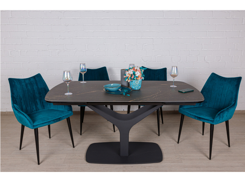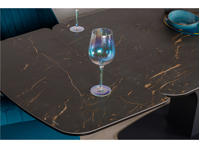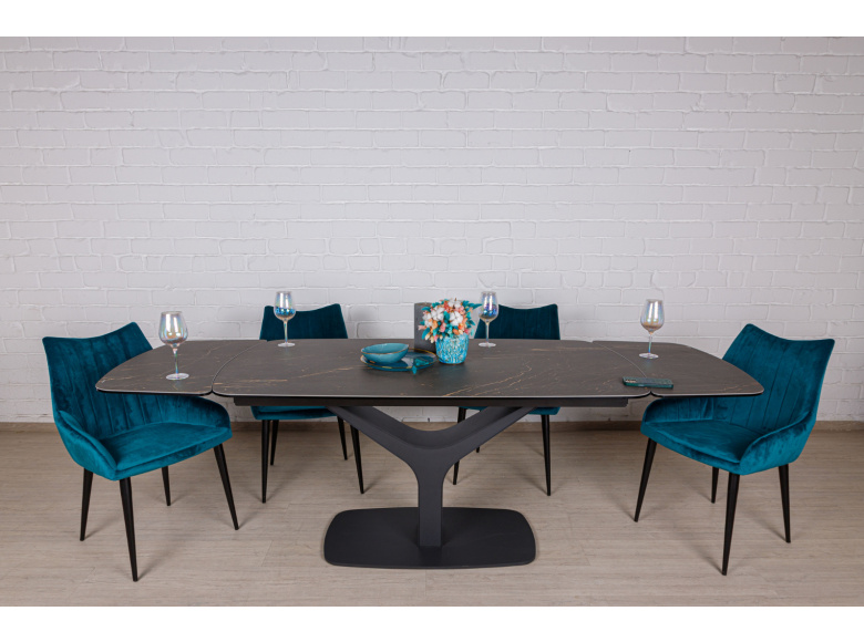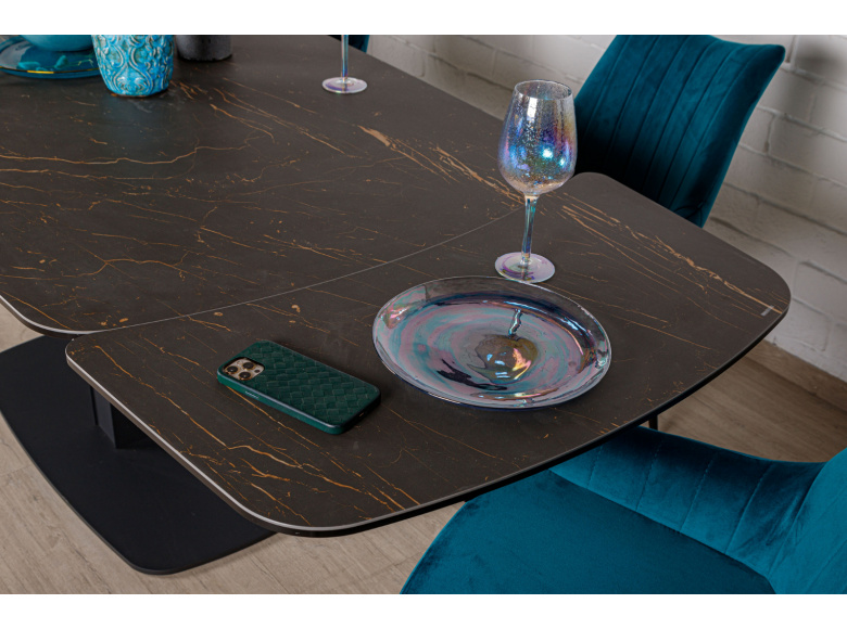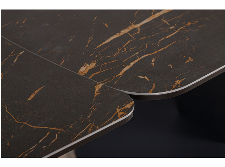 Обеденный стол VULCAN от бренда NICOLAS - идеальное решение для организации обеденной зоны в стиле модерн. Керамическая столешница имеет эффектный внешний вид, устойчива к механическим повреждениям и температурным перепадам. За ней легко ухаживать, достаточно помыть теплым мыльным раствором и протереть сухой салфеткой. Благодаря раздвижному механизму  можно увеличить размер стола до 240 см. Оригинальный каркас изготовлен из металла, придает изделию стильный и неповторимый вид.